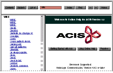 The index page (with the entry closest to the text string you entered in the search field) is displayed in the selection frame.