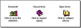 A bookshelf icon to the left of a heading is a link to that collection of topics, subjects, or books. A closed book icon to the left of a heading indicates there are subheadings beneath it. An open book icon indicates an expanded list of subheadings.