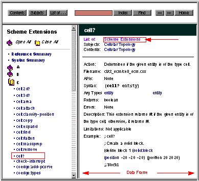 List of... field is "Scheme Extensions," clicking on "Scheme Extensions" changes the information displayed in the selection frame to what would be displayed if you had:
