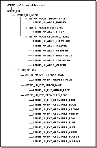 ATTRIB_HH_ENT_<something>. They are attached to entities in the calculate stages and store entity-specific information relating to each phase. For example, in the geometry simplification phase, the individual entity would be a face whose attribute contains a pointer to the simplified surface. In the stitching phase, the individual entity would be an edge whose attribute contains the edge pairing information. The individual attributes can also be used to mark specific entities to be left unchanged by the healing process.
